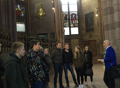 Verblüfft durften wir auch erfahren, dass die Messe im Münster sich früher in der Regel über mehrere Stunden erstreckte. Bürger brachten hierzu ihre Tiere mit, da es noch keine Sitzbänke gab machte man es sich mit Kissen und Decken bequem, und ließ sich während des Gottesdienstes von den Schneidern aus neuen Stoffen Kleider anfertigen. Das Münster war also nicht nur Zentrum der Geistlichkeit, sondern auch des Handels.