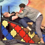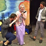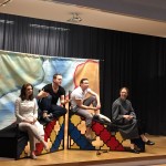 Im Anschluss an die Vorstellung waren die vier Schauspieler bereit, Fragen zum Stück, zu Shakespeare und seiner Sprache, zu ihrem Tournee-Alltag und zu ihrem Schauspielerdasein allgemein zu beantworten. Davon machte eine ganze Reihe von Schülern lebhaften Gebrauch – man wollte u.a. wissen, wie problematisch die Kuss-Szenen im Stück für die Schauspieler sind.