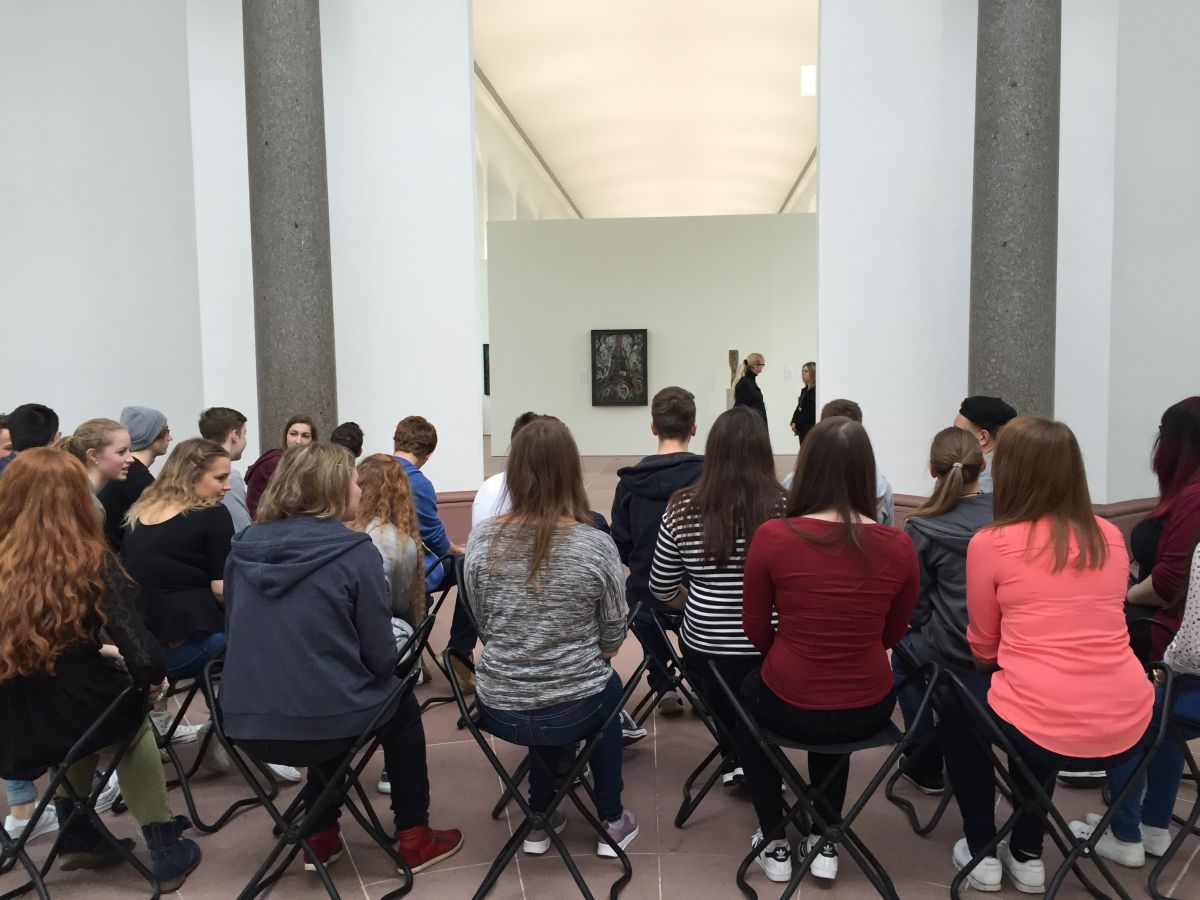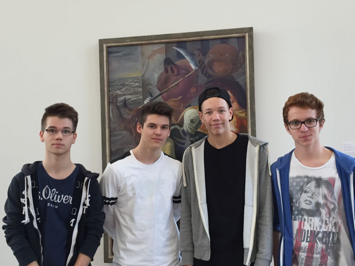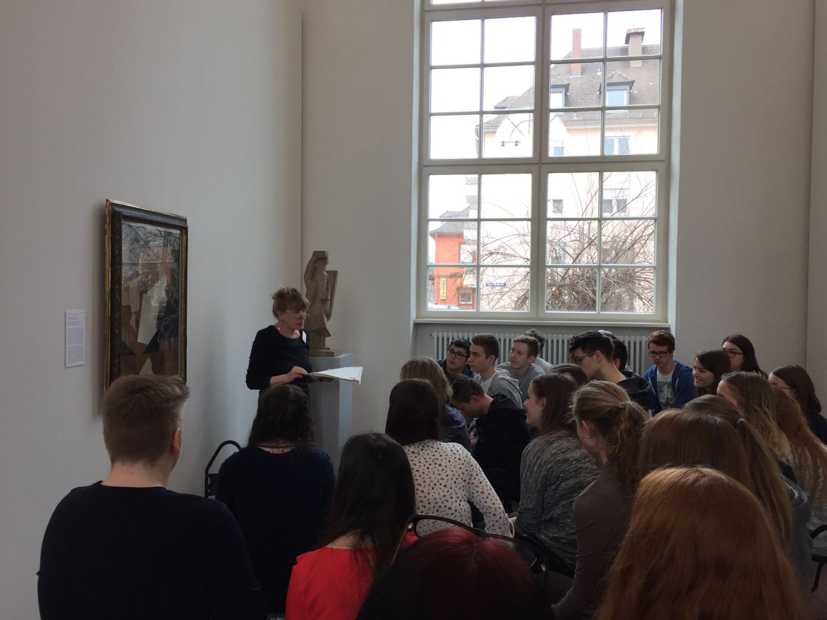 Im Rahmen der spanischen Landeskunde „Kultur und Kunst“ begab sich der Spanischkurs der Eingangsklasse in die Orangerie nach Karlsruhe. Dort nahm sich Frau Doktor Schmitt-Wischmann die Zeit und erforschte gemeinsam mit uns die verschiedenen Exponate von Juan Gris über Julio González bis hin zu Antoni Tàpies. Dadurch erlebten wir Surrealismus, Kubismus und Action Painting hautnah. Besonders beeindruckend war der Kaktusmensch, der zugleich aggressiv und beschützenswert wirkt und auf eine imposante Art verdeutlicht, dass Eisen nicht nur für die Waffenindustrie nützlich war. Ein weiteres Highlight war das Werk des aus Barcelona stammenden Künstlers Tàpies, seines Zeichen Grenzgänger zwischen Abstraktion und Gegenständlichkeit, das eine Mauer mit römischen Zahlen, eckigen Klammern und einem umgedrehten Herz enthält und an verfallene Mauern seiner Heimatstadt erinnert. So verflog ein spannender Vormittag in Windeseile und beendete unseren Streifzug durch die spanische Moderne. Bei Sonnenschein und frühlingshaft milden Temperaturen spazierten wir anschließend über das Karlsruher Schloss um uns dann bei einem gemeinsamen Mittagessen zu stärken und den Geburtstag einer Schülerin gebührend zu begehen.