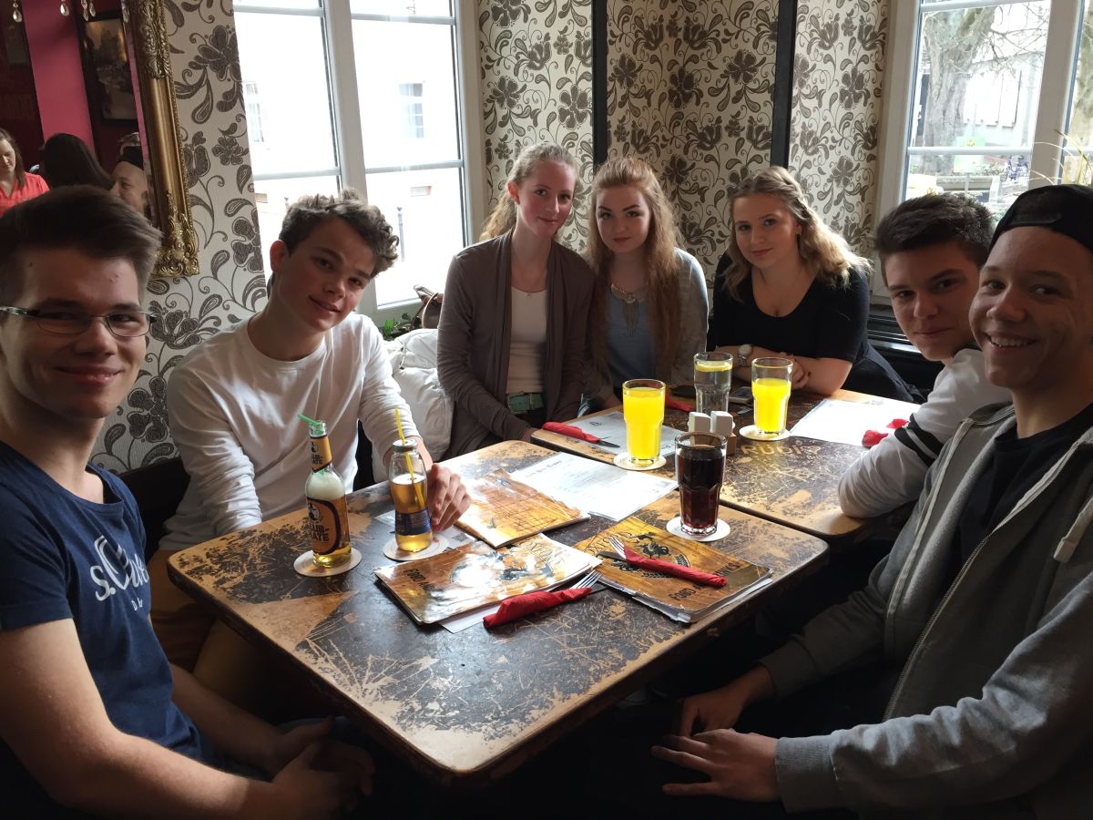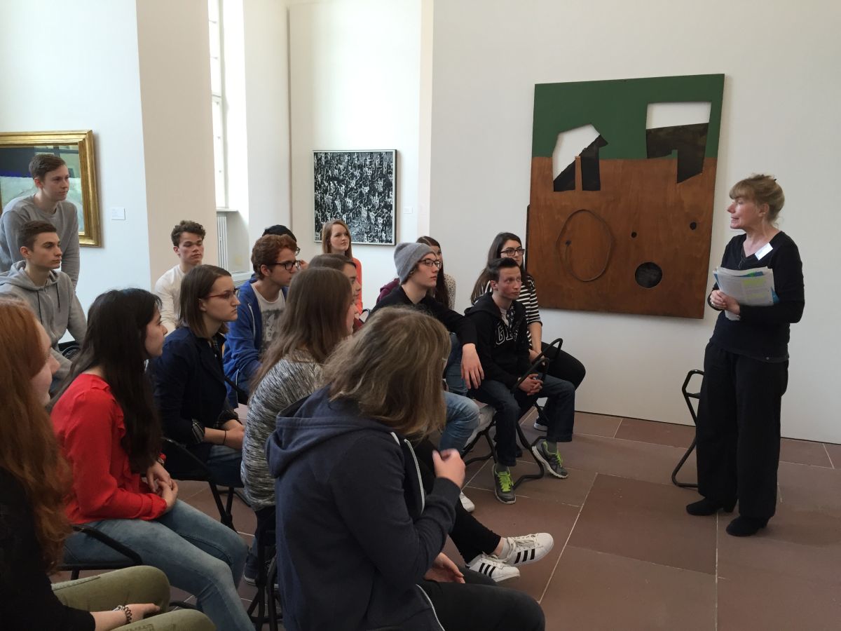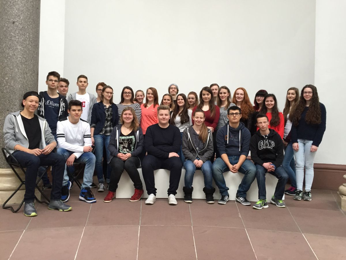 Im Rahmen der spanischen Landeskunde „Kultur und Kunst“ begab sich der Spanischkurs der Eingangsklasse in die Orangerie nach Karlsruhe. Dort nahm sich Frau Doktor Schmitt-Wischmann die Zeit und erforschte gemeinsam mit uns die verschiedenen Exponate von Juan Gris über Julio González bis hin zu Antoni Tàpies. Dadurch erlebten wir Surrealismus, Kubismus und Action Painting hautnah. Besonders beeindruckend war der Kaktusmensch, der zugleich aggressiv und beschützenswert wirkt und auf eine imposante Art verdeutlicht, dass Eisen nicht nur für die Waffenindustrie nützlich war. Ein weiteres Highlight war das Werk des aus Barcelona stammenden Künstlers Tàpies, seines Zeichen Grenzgänger zwischen Abstraktion und Gegenständlichkeit, das eine Mauer mit römischen Zahlen, eckigen Klammern und einem umgedrehten Herz enthält und an verfallene Mauern seiner Heimatstadt erinnert. So verflog ein spannender Vormittag in Windeseile und beendete unseren Streifzug durch die spanische Moderne. Bei Sonnenschein und frühlingshaft milden Temperaturen spazierten wir anschließend über das Karlsruher Schloss um uns dann bei einem gemeinsamen Mittagessen zu stärken und den Geburtstag einer Schülerin gebührend zu begehen.