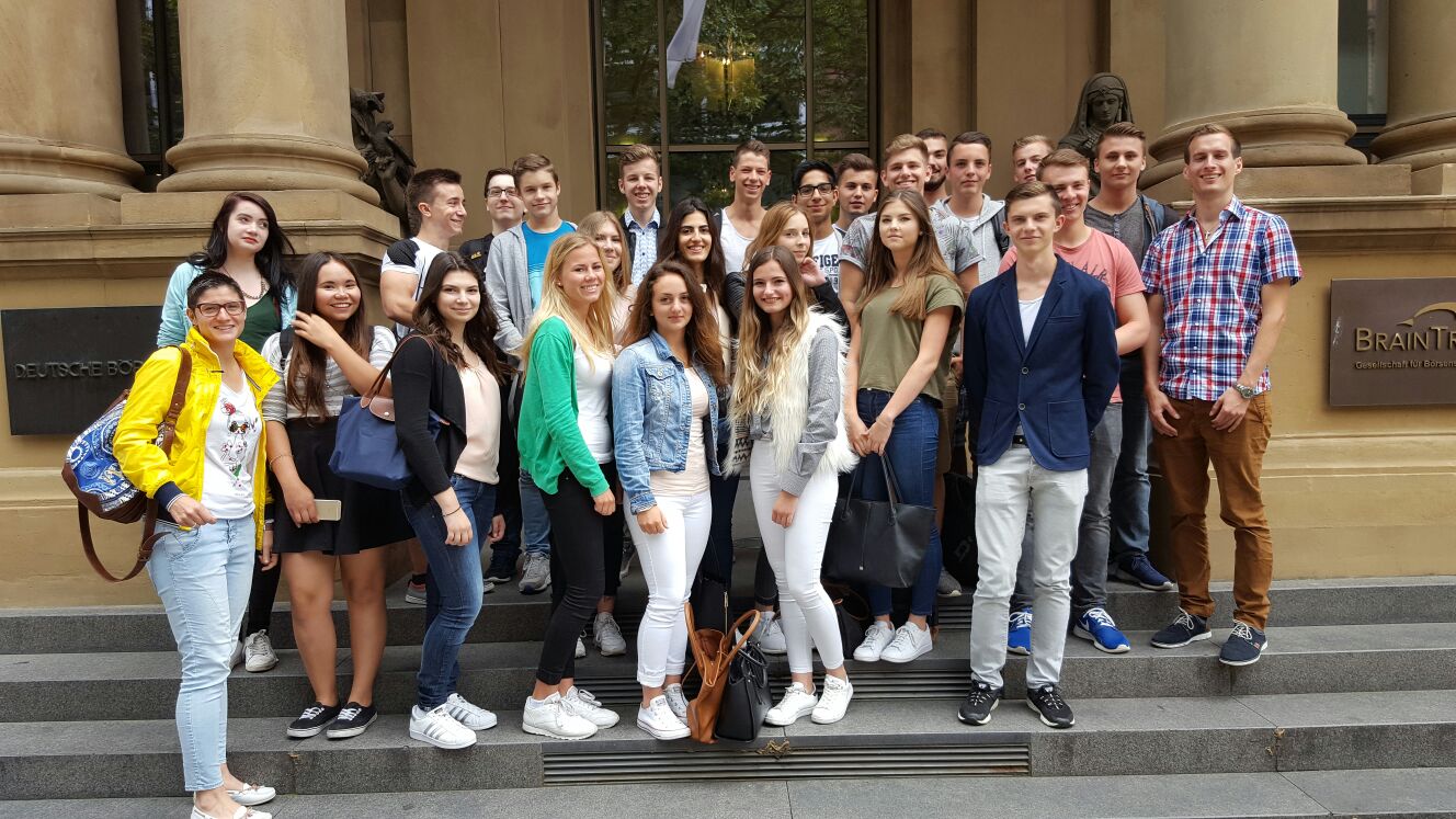 Am Mittwochmorgen fuhren die Schüler gemeinsam mit ihren Lehrern Silke Ochlich, Kurt Ochlich und Benjamin Starke in die deutsche Metropole des Geldes und Wertpapierhandels.