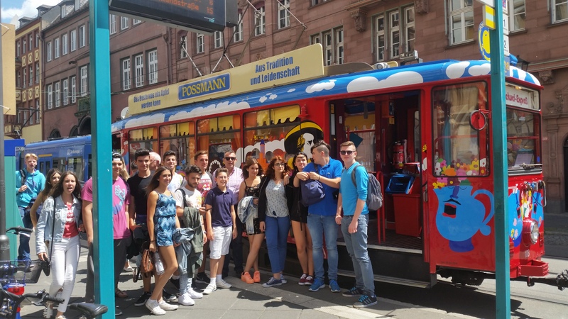 Nach der Börse besuchte die Gruppe zunächst die Paulskirche, welche nach der Deutschen Revolution 1848 Sitz der Deutschen Nationalversammlung und somit die Wiege aller deutschen Parlamente darstellt. Der Tag in Frankfurt endete mit einer Stadtrundfahrt auf der Schiene per Ebbelwei-Express bei Apfelsaftschorle und Brezeln, bevor es mit dem Bus am frühen Abend zurück nach Bruchsal ging.