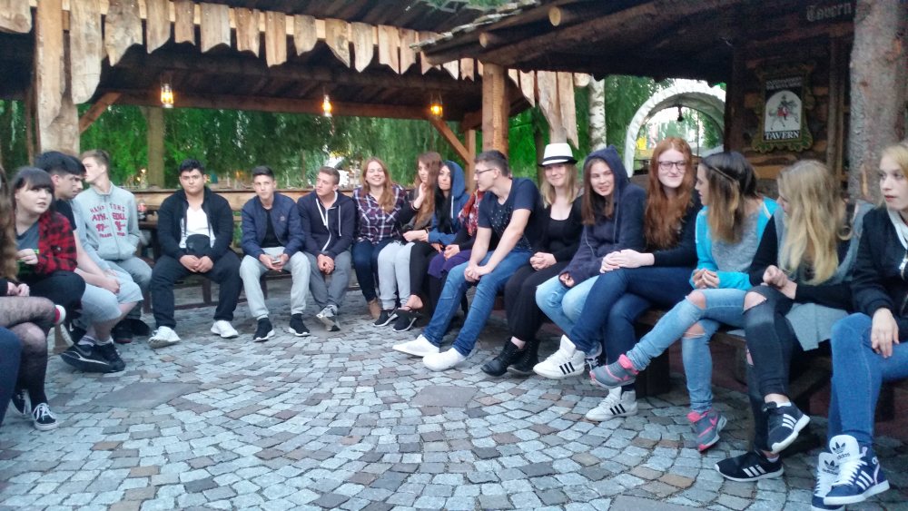 Am Donnerstagmorgen machten sich die 48 Schülerinnen und Schüler gemeinsam mit ihren Klassenlehrerinnen und stellvertretenden Klassenlehrern Frau Steinbach, Frau Kusch, Frau Scheuring, Frau Kirsch und Herr Starke mit dem Bus auf nach Rust. Am Europa-Park Camp Resort angekommen, konnte zunächst das Gepäck verstaut werden, bevor es in Kleingruppen individuell auf Entdeckungstour zwischen Silverstar, Blue-Fire, Wodan, Euro-Mir und Euro-Sat ging, wobei auch ein Lehrer pitschnass wurde.