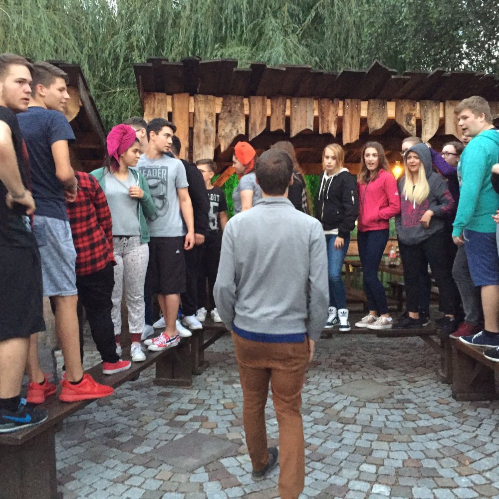 Am Abend wurden die Tipis zunächst gemütlich eingerichtet und sämtliche Akkus aufgeladen, außerdem war „Feuermachen“ angesagt, damit Herr Starke mit einem Barbecue alle verköstigen konnten. Am späten Abend wurden die Schüler aus den drei Klassen noch vor eine knifflige Aufgabe zur Förderung der Gruppenidentität gestellt, die sie nach einer dreiviertel Stunde gelöst hatten.