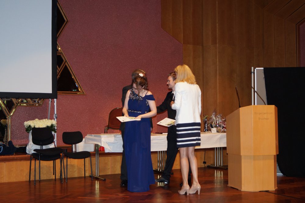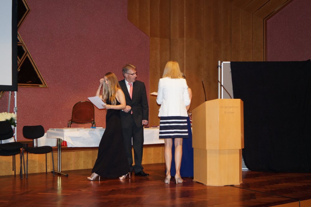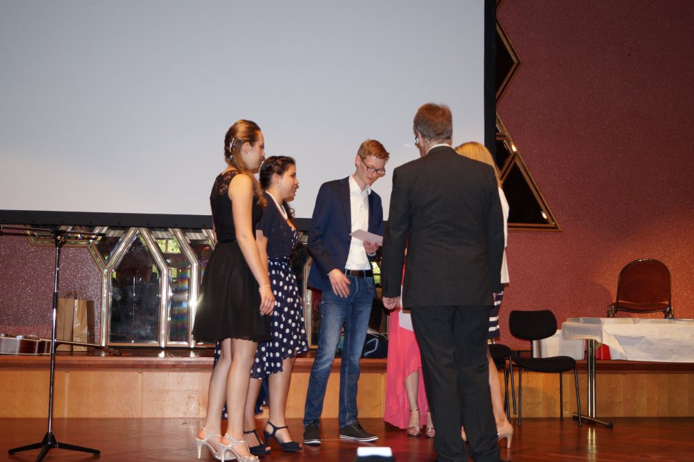 Im Anschluss daran wurden sehr gute und hervorragende Leistungen von StD’in Julia Müller und OStD Gerold Greil mit einem Lob oder Preis gewürdigt. Als Jahrgangsbeste freuten sich Maximilian Scheu und Sabrina Gunzenhauser über ihre ausgezeichneten Abschlussnoten. Die Zeugnisse der allgemeinen Hochschulreife durften alle Absolventen schließlich von ihren Klassenlehrern auf der Bühne in Empfang nehmen.