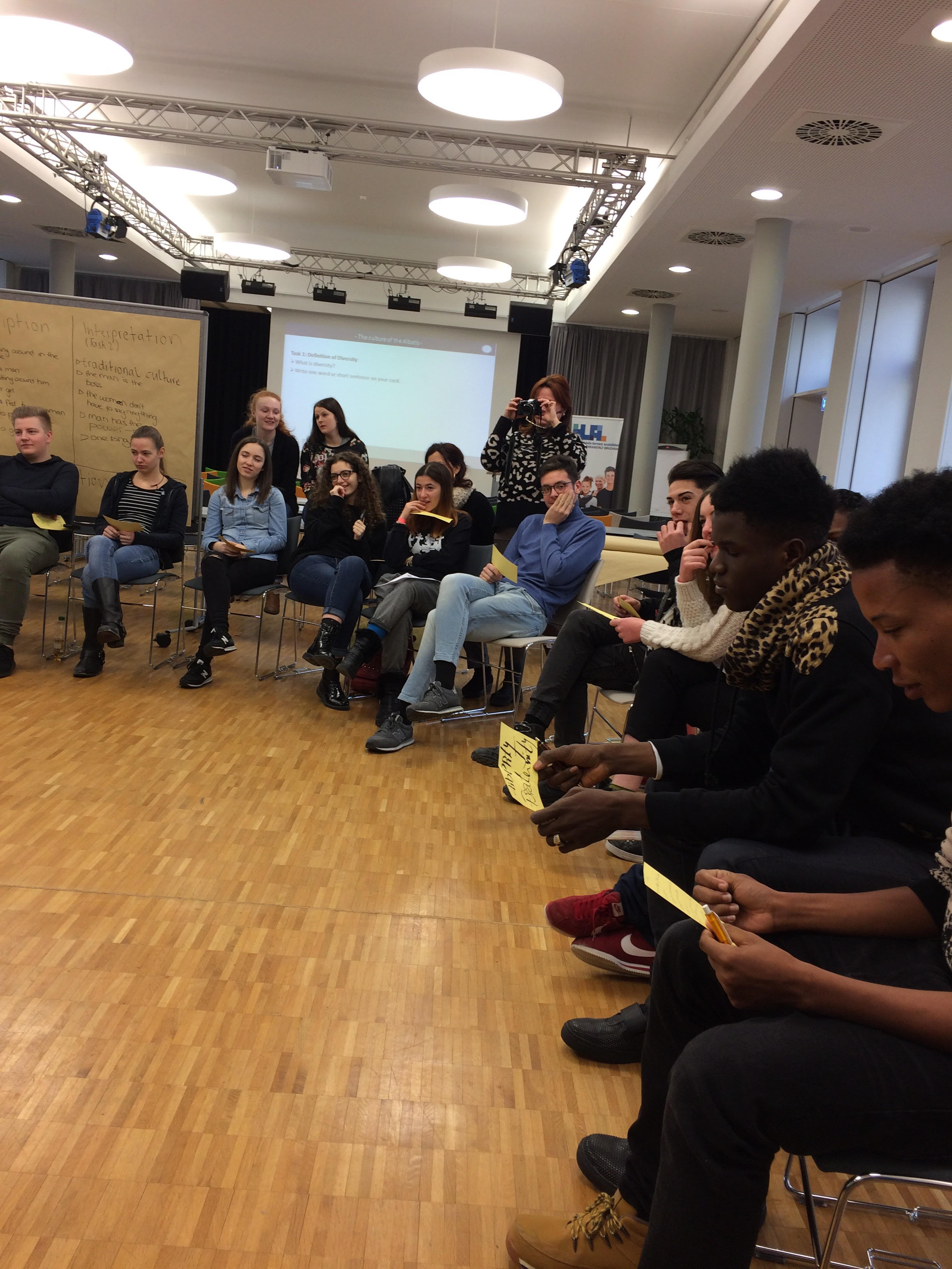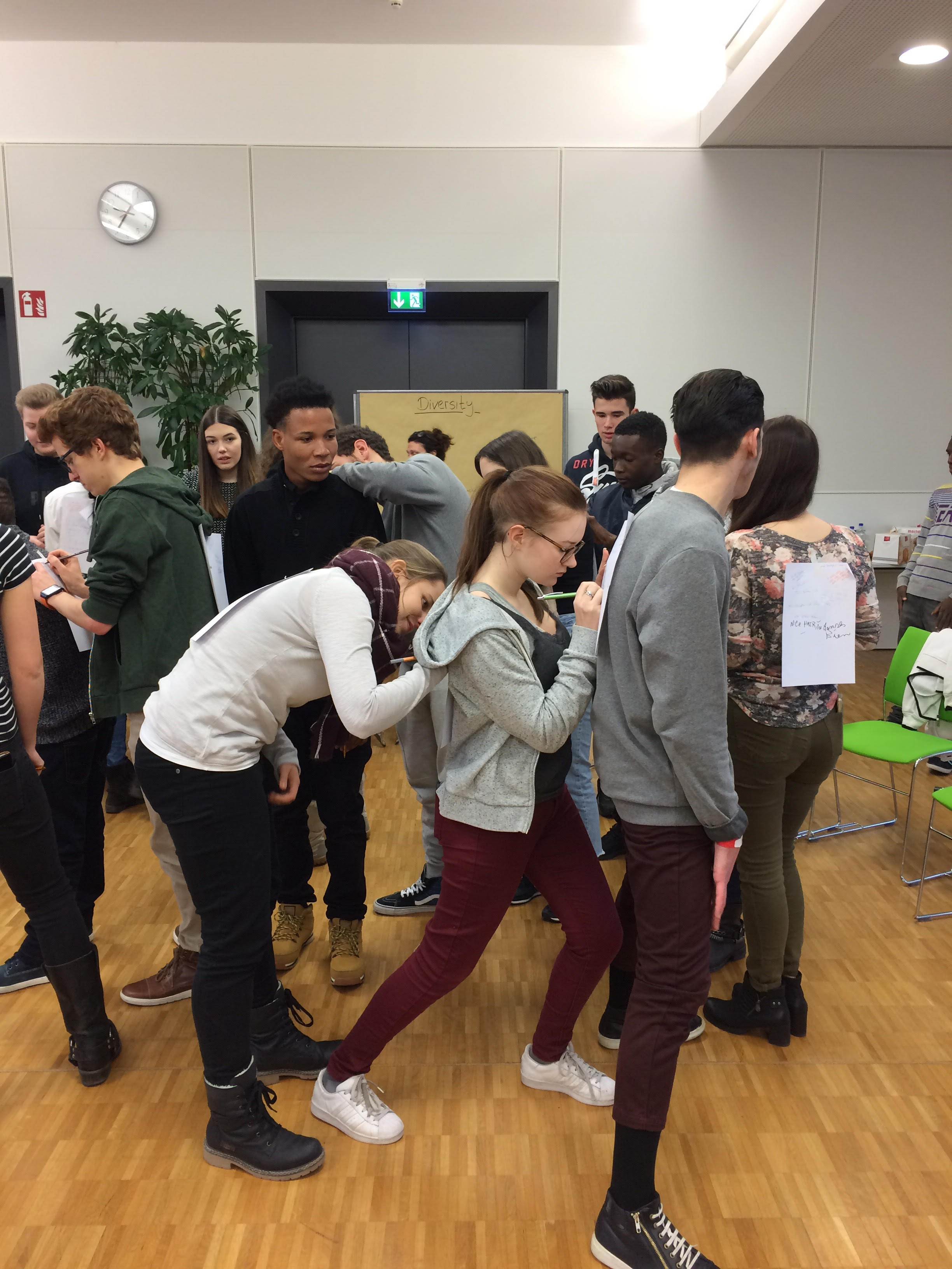 Bei vielen angeleiteten Übungen, aber auch im Alltag waren die Projektteilnehmer ständig mit dem Thema Diversity konfrontiert. Durch den Wunsch sich verstehen zu wollen, entstand eine tiefe gegenseitige Akzeptanz der Schülerinnen und Schüler, die innerhalb von kurzer Zeit ein großes Gemeinschaftsgefühl entstehen ließ.