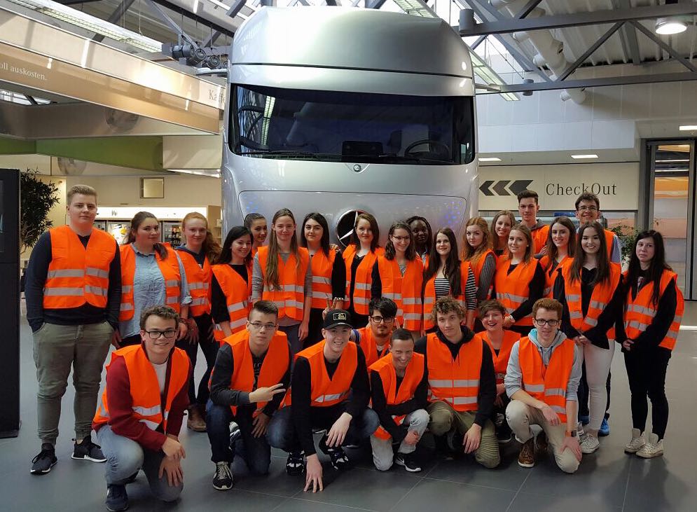 Am 16.03.17 führte es die J1a zusammen Herrn Rapport nach Wörth zu Daimler in die Produktion. Nun nach zwei gescheiterten Versuchen wurden die Schülerinnen und Schüler freundlich von ihrem Betreuer empfangen und bekamen mit einem kurzen Video einen ersten Einblick in die größte LKW-Produktionsstelle Europas.