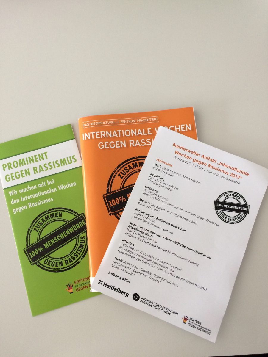 Die Teilnahme bei der bundesweiten Auftaktveranstaltung der Internationalen Wochen gegen Rassismus in der Alten Aula der Uni Heidelberg!