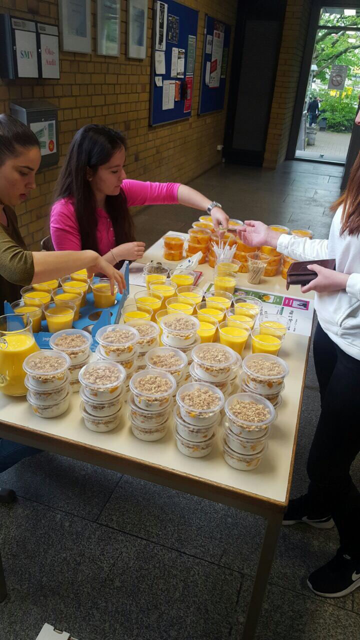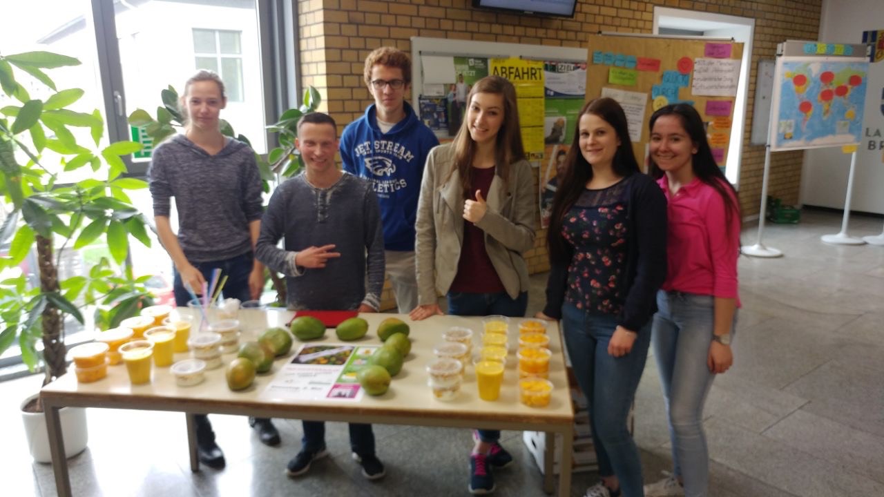 Der Seminarkurs „Diversity“ bewarb die Mango-Aktion zusätzlich durch den Verkauf von Mangomüsli, köstlichen Mangosmooties und Mangos to go. So konnte jeder, der Lust hatte, die exotischen Früchte direkt probieren und das besonders intensive Aroma genießen.