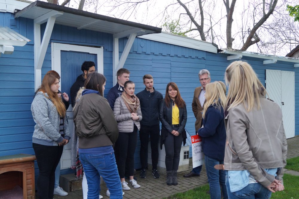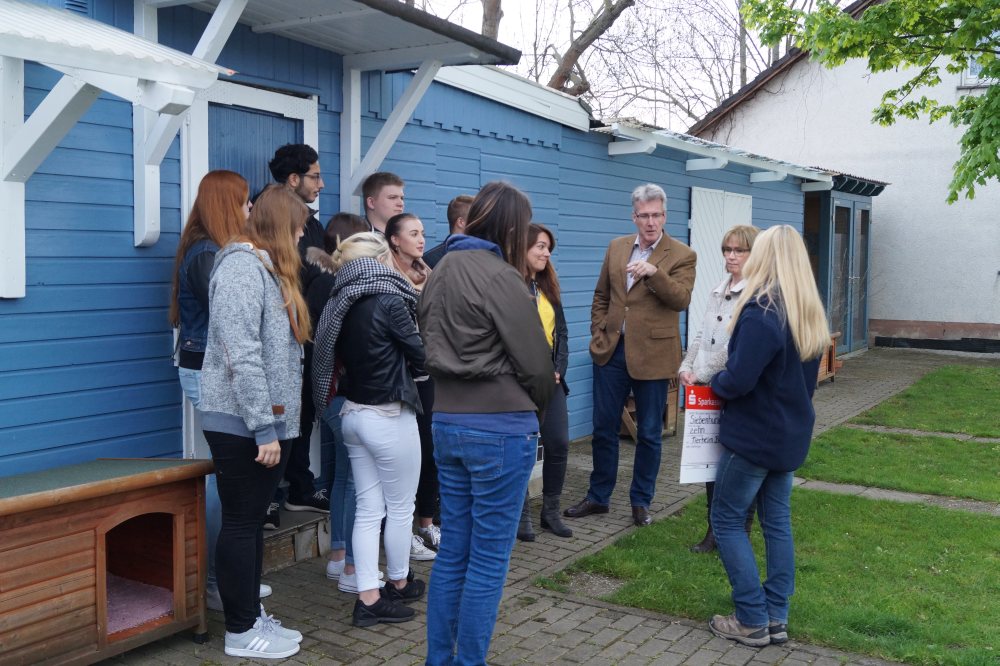 Am 26.04.2017 fand schließlich die Scheckübergabe an Frau Martina Nagel statt, eine Mitarbeiterin des Tierheims. Die Freude darüber war groß, da das Tierheim auf Fördermittel von außen angewiesen ist, um eine Versorgung der Tiere gewährleisten zu können. Frau Nagel zeigte im Anschluss den Schülern die Räumlichkeiten und erklärte dabei, wie sie die Spende einsetzen möchte. Im nächsten Monat soll das Freigehege der Hunde durch eine große isolierte Hütte erweitert werden. Ein weiterer Teil des Geldes wird selbstverständlich in die Pflege und Impfung von kranken und alten Tieren fließen. Während der Führung wurden die Schüler auch auf die Problematik hingewiesen, dass Anschaffungen von Tieren häufig unüberlegt seien und viele zu spät merken würden, dass Tiere Arbeit machen oder sich manche Tiere nicht für jedermann eignen.