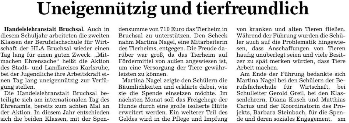 BNN 10.05.2017 – Uneigennützig und tierfreundlich