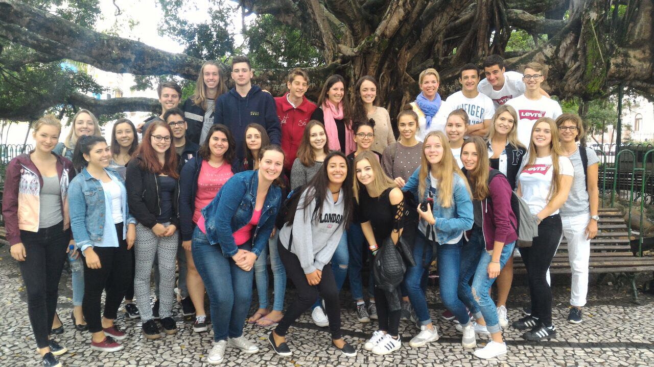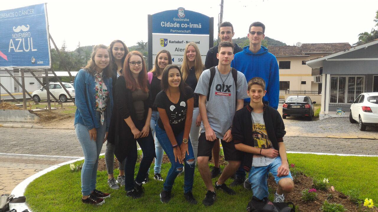 Wie schon in den vergangenen Jahren fand auch dieses Jahr wieder der Brasilenaustausch mit den Partnerschaftsstädten Brusque und Guabiruba statt. Zusammen mit Frau Müller von der Handeslehranstalt in Bruchsal und Frau Sarochan von den Beruflichen Schulen Bretten besuchten wir unsere Austauschschüler im Zeitraum vom 21. Oktober bis zum 1. November 2017. Müde vom Flug kamen wir am Samstag, 22. Oktober, in Florianopolis an. Nach einem herzlichen Empfang ging es weiter nach Brusque und Guabiruba. Dort verbrachten wir den restlichen Tag sowie den Sonntag bei unseren Gastfamilien, da die Wochenenden Familientage waren und individuell von den Brasilianern gestaltet wurden. Bei diesem Austausch hatten wir, wie auch schon in Deutschland, ein interessantes Programm, welches am Montag sofort mit einem Strandbesuch startete. Gemeinsam besuchten wir die Aussichtsplattform im Parque Unipraisas, die wir nur mit einer Gondelfahrt erreichten und anschließend den Tag an dem Strand ausklingen lassen durften. Den darauffolgenden Tag verbrachten wir in einem naturgeschützten Regenwaldgebiet, wo uns der Besitzer herumführte und uns die Natur in Brasilien näher brachte, danach aßen wir in einer Grundschule zu Mittag und wurden auch noch zum Bürgermeister von Brusque eingeladen. Am Mittwoch, 25. Oktober, trafen wir uns relativ früh, um zu einer Zipline zu fahren. Die längste Zipline Südamerikas, 2 Kilometer lang. Wir mussten lange dort hinfahren, aber für die Mutigen von uns hat es sich gelohnt, sich in den Abgrund zu stürzen. Den nächsten Tag verbachten wir in Florianopolis. Hier hatten wir Zeit die Innenstadt zu besichtigen und anschließend ging es mit einem Boot zu unserem Mittagessen, welches traditionelles Fischessen beinhaltete. Danach machten wir uns weiter auf dem Weg zu einem weiteren Strand, wo wir selbst entscheiden konnten was wir machen möchten. Auf dem Programm stand auch ein Besuch bei Universität von Brusque, die Unifebe. Nach einem Rundgang ging es mit einem lustigen Fotoshooting weiter. Der Tag wurde mit einer Capoeira Aufführung einem brasilianischem Kampftanz beendet. Nach ein paar Tagen mit unseren Gastfamilien trafen wir uns am Montag wieder. Wir besuchten den Bürgermeister von Guabiruba und erfuhren etwas über die langjährige Partnerschaft zu Karlsdorf-Neuthard. Mittags besuchten wir eine Schule von der wir musikalisch empfangen wurden. Am Dienstag ging es für uns schon viel zu früh zurück in die Heimat. Mit vielen neuen Erfahrungen, Erlebnissen, Freundschaften und Unmengen von Havaianas im Gepäck machten wir uns nach einem tränenreichen Abschied auf die Heimreise.