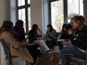 Nach dieser zweieinhalbstündigen Selbsterfahrungseinheit wurde mit den Seminar-teilnehmerinnen und Seminarteilnehmern das Erlebte ausführlich reflektiert. Hierfür wurde gemeinsam, anhand der verschiedenen im Planspiel durchlaufenen Stationen, der Ablauf des deutschen Asylverfahrens erarbeitet. Über die Verknüpfung des selbst Erlebten mit rechtlichem Hintergrundwissen wurden den Teilnehmerinnen und Teilnehmern Schwierigkeiten aufgezeigt, denen Schutzsuchende während der Flucht und in Deutschland ausgesetzt sind. Die Schülerinnen und Schüler haben während des Planspiels ein Bewusstsein für die Problematik Flucht entwickelt und wurden dadurch befähigt, sich zukünftig informiert in den Diskurs rund um die Thematik Flucht und Asyl einzubringen!