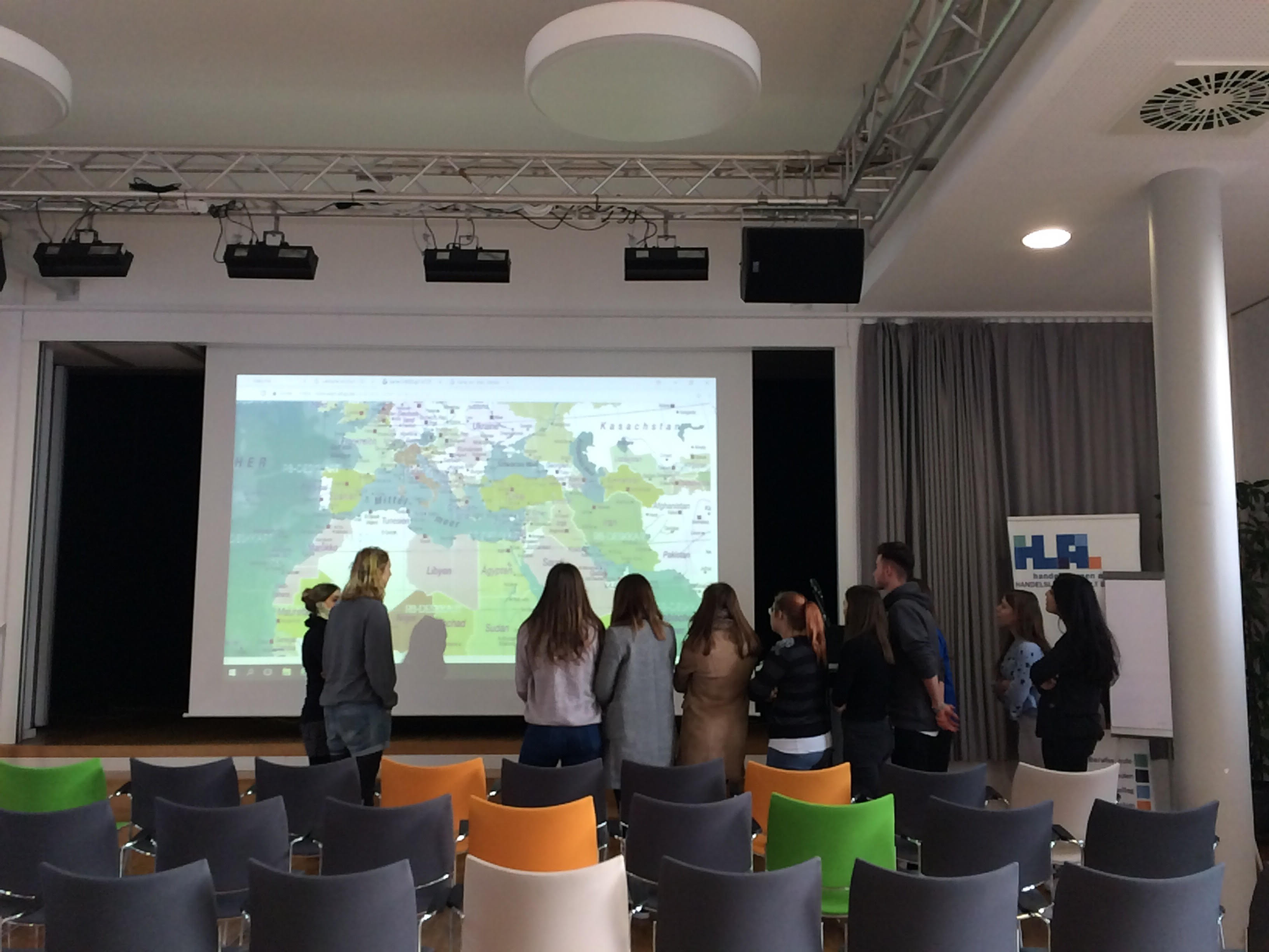 Im Planspiel „Auf der Flucht“ erlebten die Seminarteilnehmerinnen und Seminarteilnehmer wie sich Fluchthelfer, Beamte und Geflüchtete fühlen und mit welchen Schwierigkeiten sie konfrontiert sind. Die Teilnehmerinnen und Teilnehmer mussten sich dabei aktiv einbringen und beispielsweise selbst entscheiden, welche Habseligkeiten sie mitnehmen, und wie sie die Flucht über das Mittelmeer bewältigen. Nach der „Ankunft“ in Deutschland wurden den Teilnehmerinnen und Teilnehmer Sprachbarrieren, die Bedeutung des Wartens während des Asylverfahrens und weitere Hürden aufgezeigt.