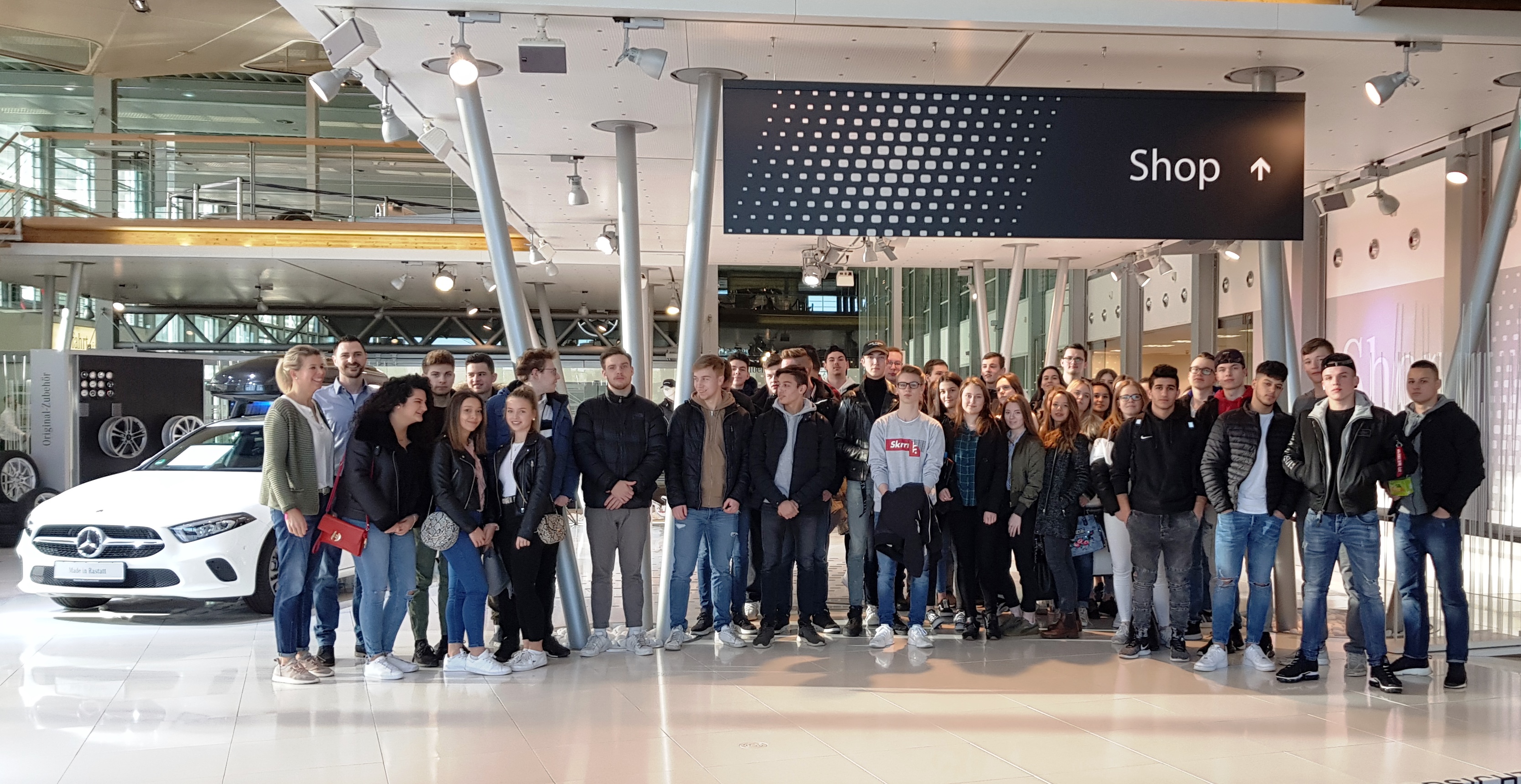 Am gestrigen Montag, 26.02.2019, erhielten die Schülerinnen und Schüler der J1d des Wirtschaftsgymnasiums und der W2/1ÜF der Berufsfachschule für Wirtschaft die Möglichkeit, ihre kaufmännischen Kenntnisse in Fragen der Beschaffung, Logistik und Fertigung live bei der Daimler AG in Rastatt mit der Praxis zu vergleichen.