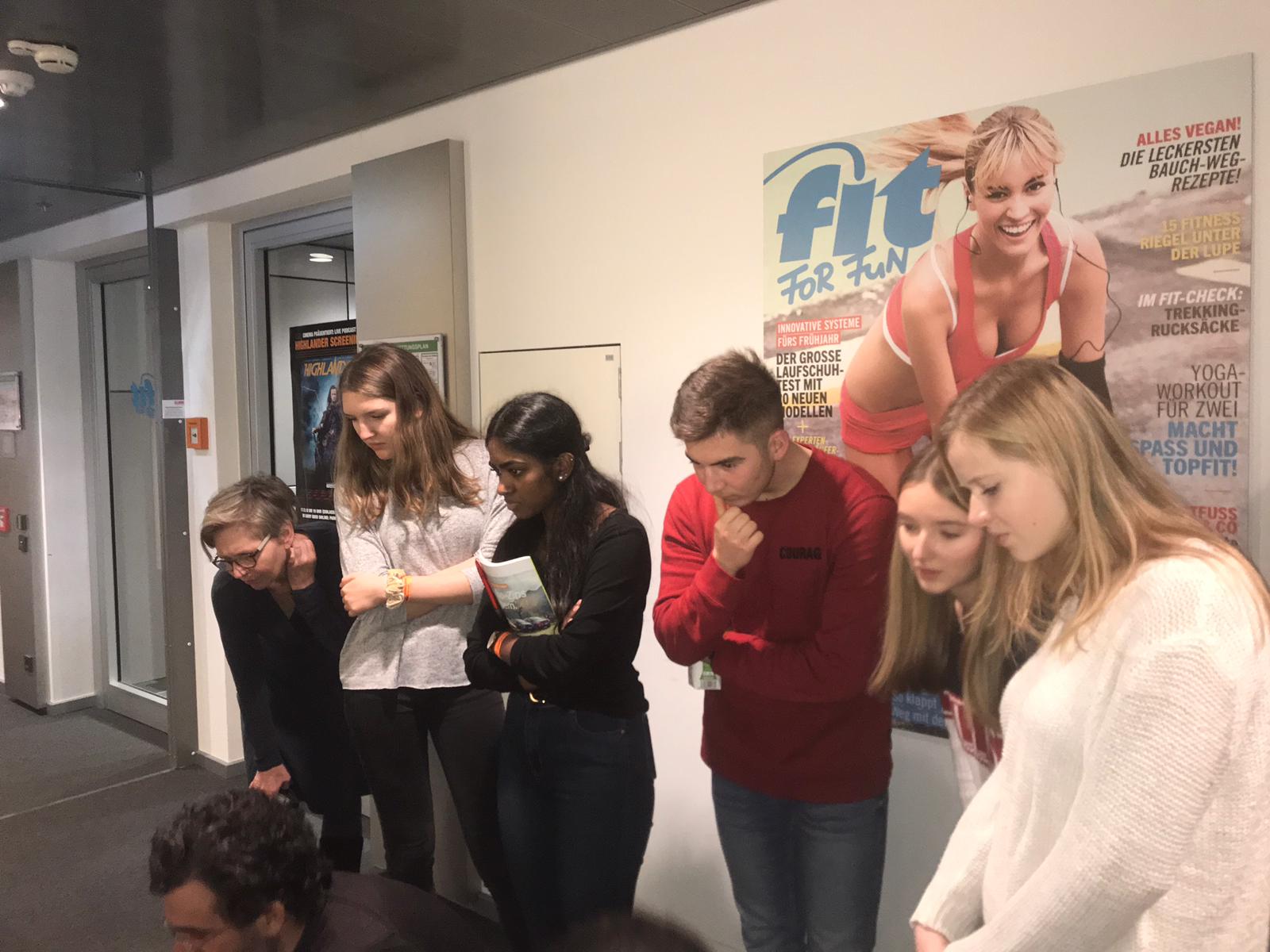 Während ihres Aufenthaltes durften die Schüler/-innen auch den Chefredakteur kennenlernen. Dieser stellte ihnen nicht nur „Fit for Fun“ vor, sondern ermöglichte ihnen auch Einblicke in die Produktion und Entwicklung sowie allgemein in die Räumlichkeiten und das Redaktionsleben. Anschließend wurden sie dazu eingeladen die Hamburger Spezialität Fischbrötchen auszuprobieren, bei dieser Gelegenheit hatten die Schüler/-innen die Möglichkeit den Chefredakteur für ihre Seminararbeit auszufragen.