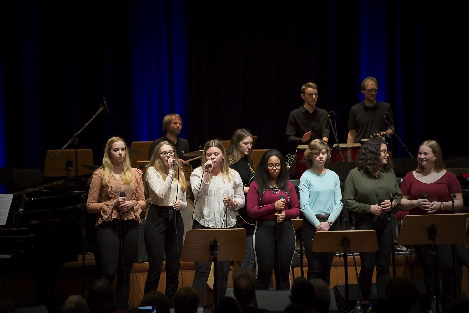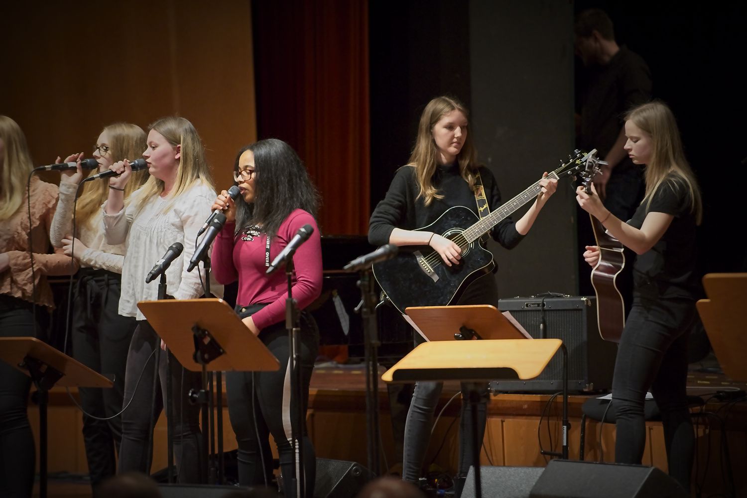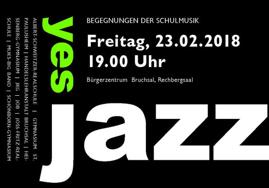 „Yes Jazz – Begegnungen der Schulmusik“: Unter diesem Namen fand am Freitag, den 22.02.2019, im Bürgerzentrum Bruchsal das Abschlusskonzert des gleichnamigen Programmes des Landkreises Karlsruhe statt. Beteiligt waren an der sechsten Auflage von Yes Jazz Big Bands und Combos der Musik- und Kunsthochschule Muks, der Gymnasien Justus-Knecht, St. Paulusheim, Schönborn und Heisenberg, der Handelslehranstalt Bruchsal und Joß-Fritz-Schule Untergombach. Thematisch wurde eine bunte Vielfalt geboten – vom erfrischendes Big-Band-Jazz klassischer Stilrichtungen über Fusion bis hin zu Pop-Jazz. Die Big Band der HLA unter Leitung von Andreas Rapport trug mit jazzigen Stücken zum Gelingen des Abends bei. Auch die Songs Shotgun von Georg Ezra und Little Talks of Monsters an Men begeisterten die Zuschauer, die sich zahlreich im Rechbergsaal des Bürgerzentrums eingefunden hatten.