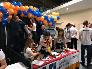 Die Teilnehmer der Messe kamen aus den Bundesstaaten der USA, aus Kanada, Brasilien, Österreich und Deutschland. SchülerInnen der 2-jährigen Berufsfachschule für Wirtschaft und des Berufskolleg I, begleitet von ihren Lehrkräften Andrea Nemeth und Stefan Rehorst, nutzten diese Chance, ihre Übungsfirma erneut in den USA zu präsentieren.