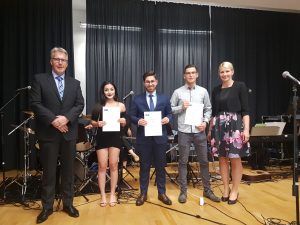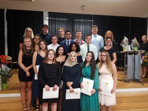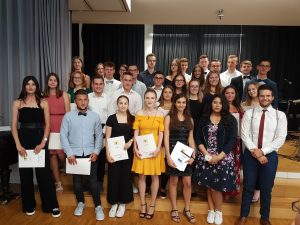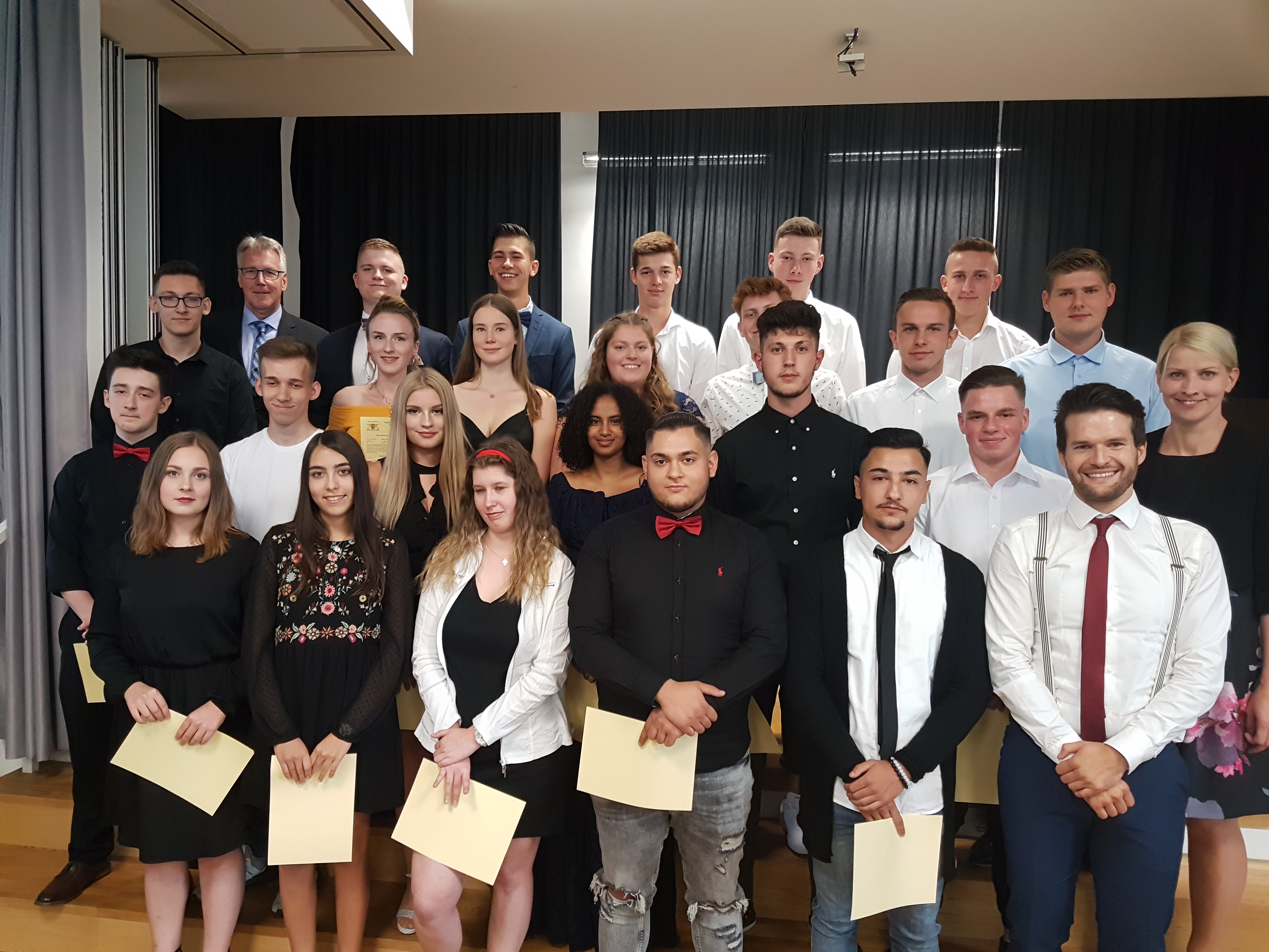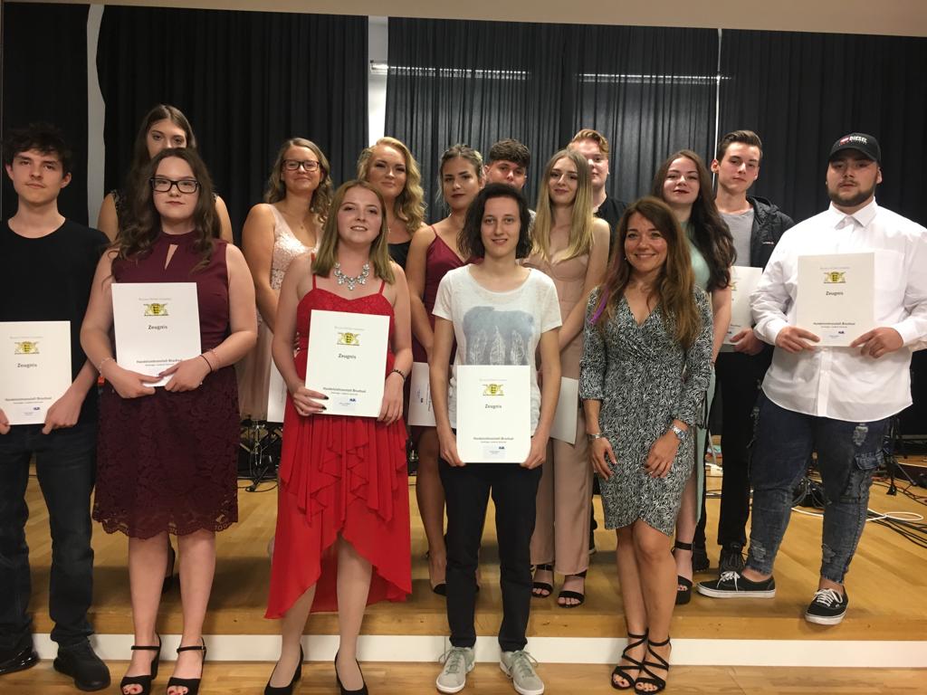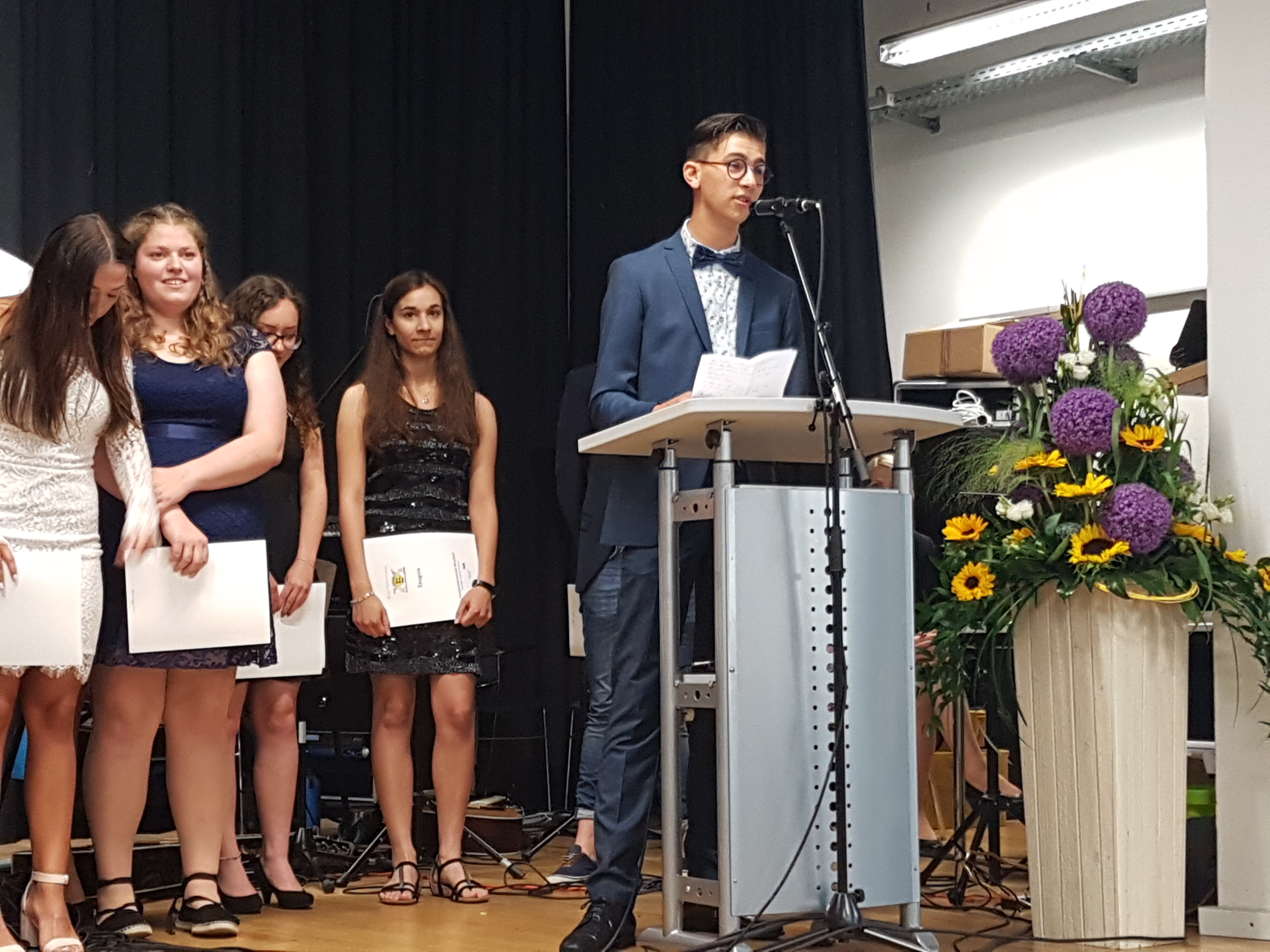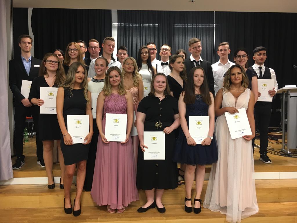 Am Donnerstag, den 11.07.2019, wurden 41 Schülerinnen und Schüler der zweijährigen Berufsschule für Wirtschaft und 74 des Berufskollegs II mit ihrem Abschlusszeugnis verabschiedet. Nach einer motivierenden und inspirierenden Rede über lebenslanges Lernen sowie das Entstehen und Heranwachsen persönlicher Vorlieben und Fähigkeiten der Abteilungsleiterin Christina Manz wurden die Schülerinnen und Schüler in die anschließenden Feiern mit Mitschülern und Lehrern entlassen. Ein besonderes Lob geht dabei an Manuel Schmitt aus der W2/1 und Maren Kaucher aus der BK 2/1 mit den besten Abschlusszeugnissen. Für herausragende Leistungen im Fach Deutsch erhielten die Schülerinnen Stefanie Hanagarth aus der W2/1 und Arwa Axmad aus der BK 2/3 den Scheffel-Förderpreis. Die Schulband unter der Leitung von Andreas Rapport untermalte den Abend mit ihren musikalischen Beiträgen. Mit lustigen Dankesreden und Fotoshows aus den letzten zwei Jahren bedankten sich die Schülerinnen und Schülern für die gemeinsamen letzten Jahre. Die Schulleitung und die Lehrkräfte freuen sich darauf, einige der Schülerinnen und Schüler im nächsten Jahr bei uns im Berufskolleg, der Berufsschule oder dem Wirtschaftsgymnasium begrüßen zu dürfen und wünschen allen anderen viel Erfolg auf ihrem weiteren Weg.
