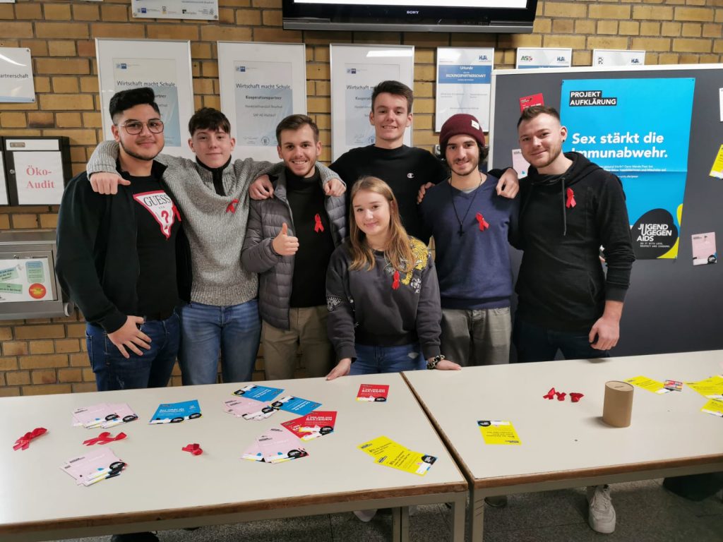 „Was ist nochmal der genaue Unterschied zwischen HIV und AIDS?“, oder: „Wie wird das Virus genau übertragen?“ Fragen wie diese bestimmten am 29. November 2019 die Gespräche in den Klassenzimmern und Schulfluren der Handelslehranstalt Bruchsal. Aufgrund des alljährlichen Welt-AIDS-Tages am 1. Dezember organisierten die Schüler der SMV und freiwillige Helfer einen informativen Aktionstag für alle Schüler der HLA.