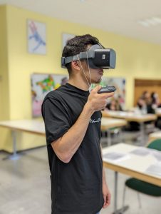 Neben wichtigen Hintergrundinformationen, Übungen und Recherchen zur Selbsteinschätzung und zu möglichen Berufsfeldern war der Einsatz mehrerer VR-Brillen sicher der Höhepunkt des Projekts. Die Teilnehmenden konnte hier dreidimensional und in 360°-Perspektive in viele verschiedene Berufe, handwerkliche und kaufmännische, hineinschnuppern und an typischen Situationen teilnehmen.