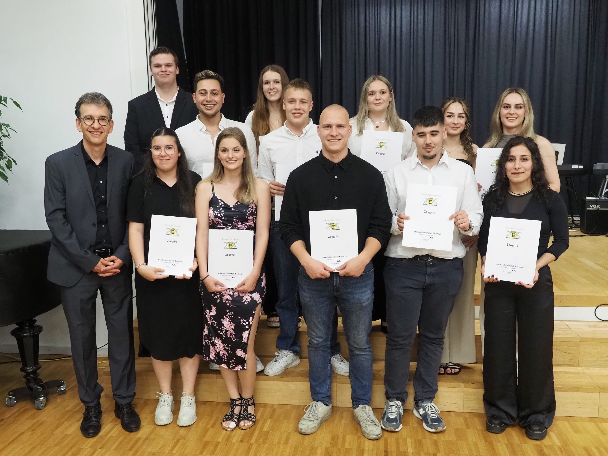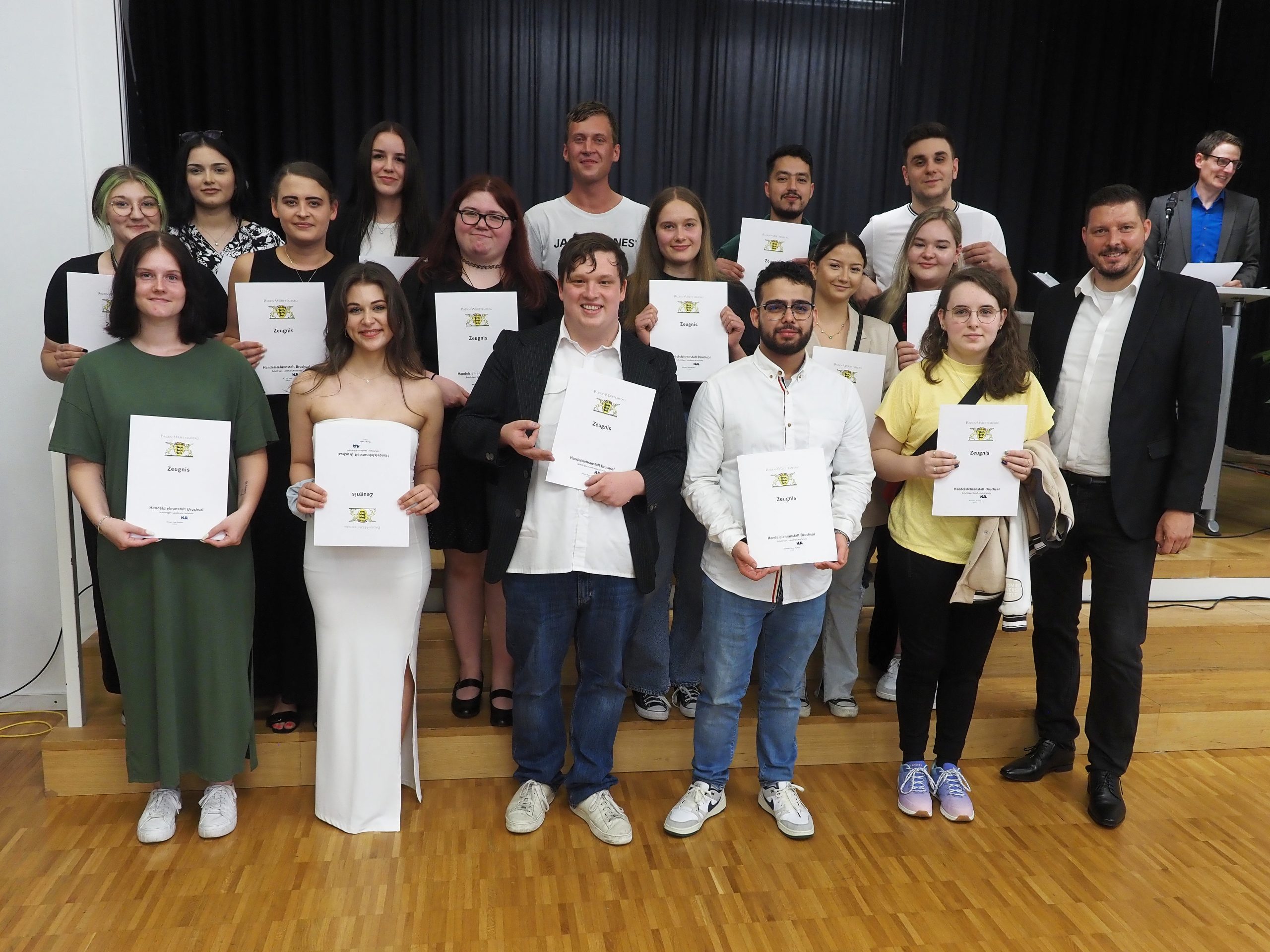 Am Donnerstagabend, den 20. Juni 2024, wurden die Absolventinnen und Absolventen der kaufmännischen Berufsschule der Handelslehranstalt Bruchsal feierlich verabschiedet. In der festlich geschmückten Aula feierten die Absolventinnen und Absolventen der Ausbildungsberufe „Verkäufer/-in“, „Einzelhandelskaufmann/-frau“, „Fachkraft für Lagerlogistik“, „Kaufmann/-frau für Büromanagement“, „Kaufmann/-frau im Groß- und Außenhandelsmanagement“ sowie „Industriekaufmann/-frau“ ihren erfolgreichen Abschluss und den Beginn eines neuen Abschnitts in ihrem (Berufs-)Leben.