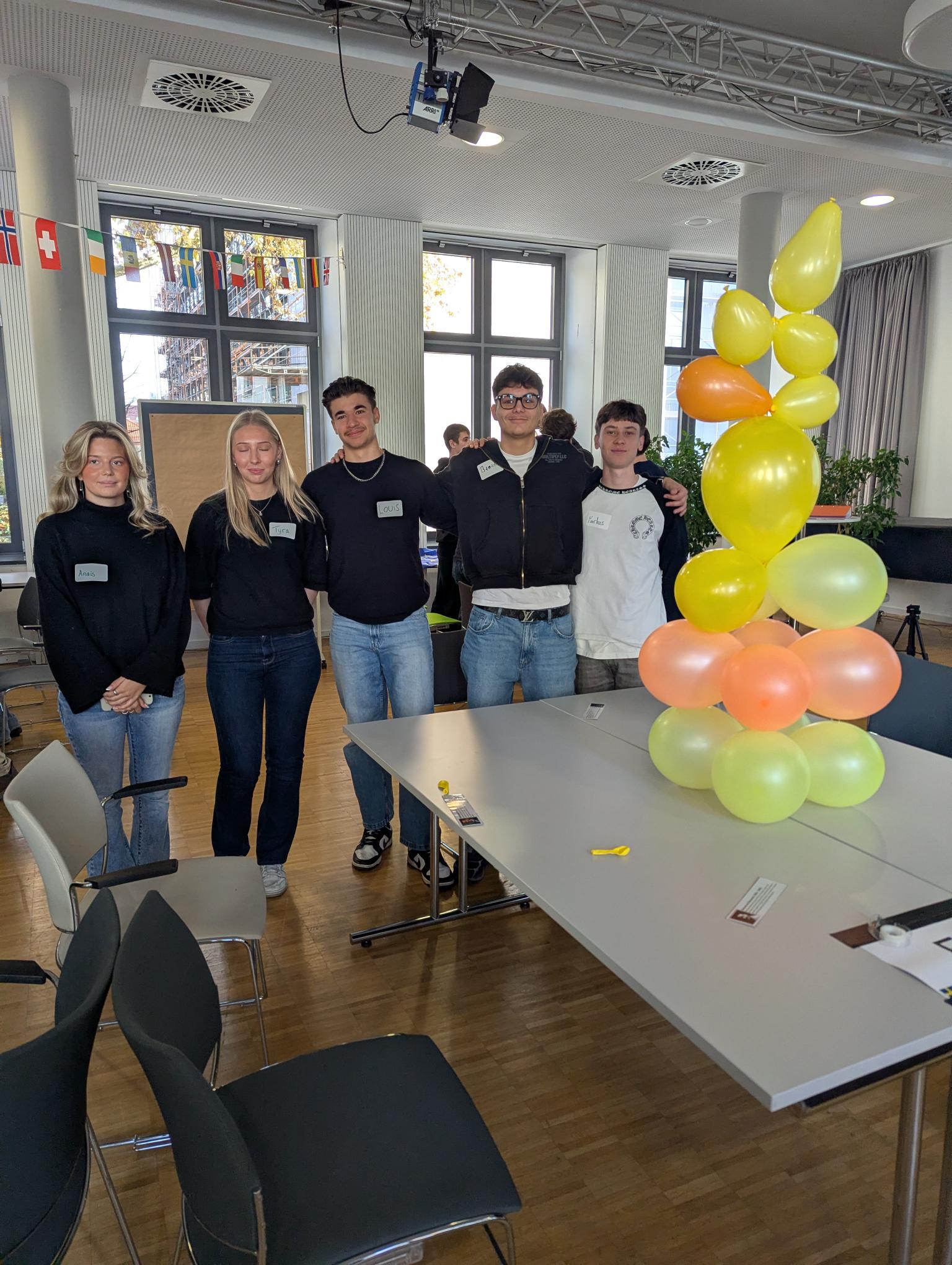 Der Besuch begann am Mittwoch mit der Ankunft der schwedischen Gäste am Bruchsaler Bahnhof. Nach einem ersten Kennenlernen wartete eine spielerische Herausforderung: Beim Bau eines möglichst hohen Ballonturms waren Kreativität, Kommunikation und Teamgeist gefragt – Eigenschaften, die im weiteren Verlauf des Tages noch häufiger benötigt wurden. Denn anschließend widmeten sich die Gruppen gemeinsam der Entwicklung innovativer Geschäftsideen. Sie entwarfen Logos, bereiteten Präsentationen vor und stellten ihre Konzepte später in Form eines Pitches vor. Eine gemeinsame Mittagspause in der Bruchsaler Innenstadt sowie ein entspannter Spaziergang zum Schloss rundeten den abwechslungsreichen Auftakt gelungen ab.