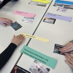 In Kleingruppen setzten die Jugendlichen zunächst Karten mit statistischen Daten, Schlüsselbegriffen und kurzen Erläuterungen zueinander in Beziehung. Schritt für Schritt entstand so ein individuelles Gesamtbild, das wie ein Puzzle immer weiter anwuchs und die komplexen Zusammenhänge greifbar machte. Besonders bereichernd war der anschließende Gruppenwechsel: Die neuen Teams erklärten sich gegenseitig ihre zuvor gelegten Klimapuzzles, knüpften Verbindungen zwischen ihren Überlegungen und vertieften das gemeinsame Verständnis.